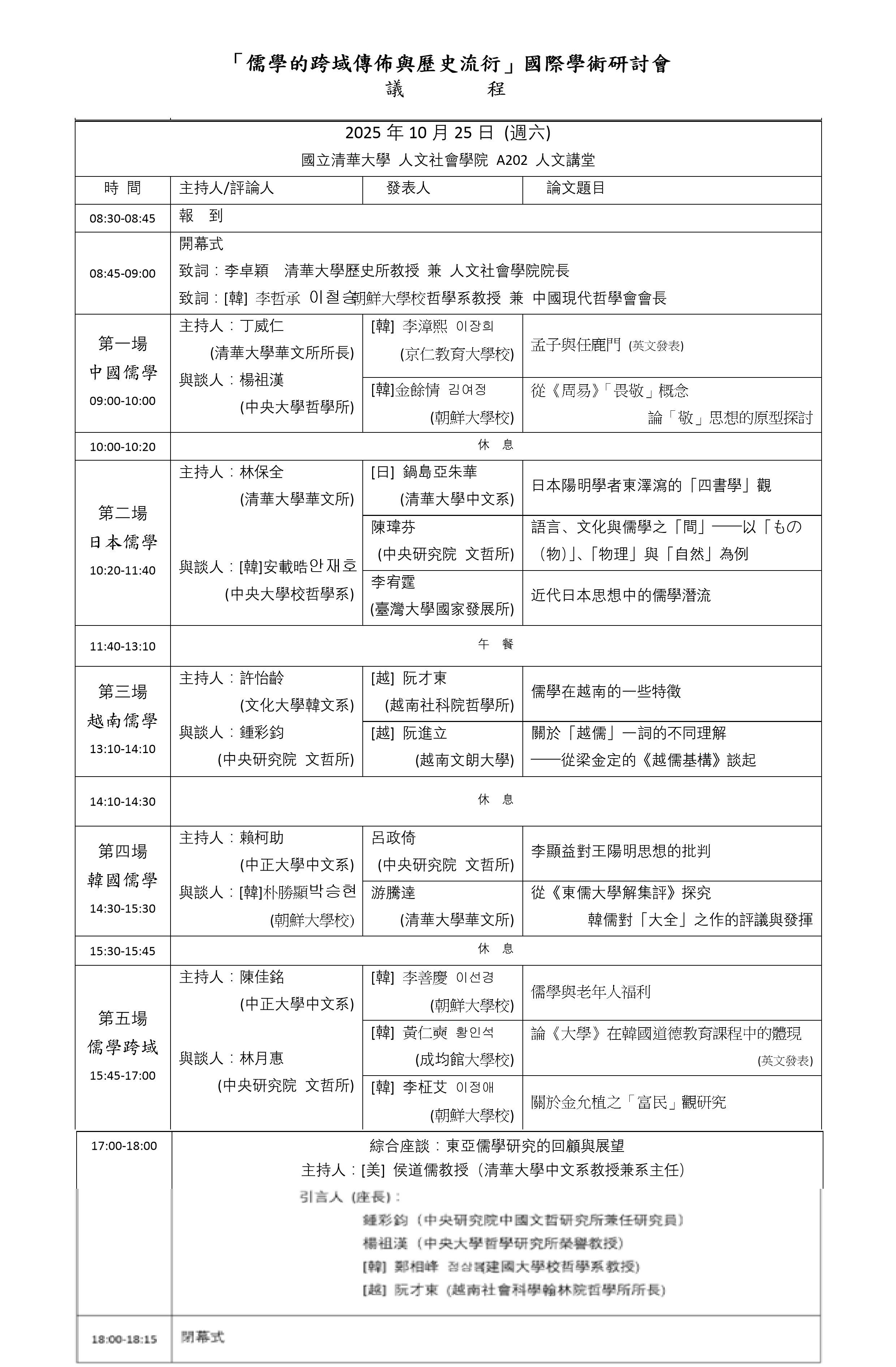 【研討會】華文所「儒學的跨域傳佈與歷史流衍」國際學術研討會:10/25(六)08:30